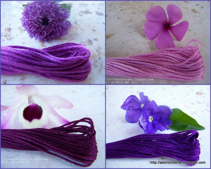 Levei minhas meadas para a chácara nesse final de semana e resolvi brincar de procurar na natureza as cores mais próximas das linhas. Algumas eram praticamente idênticas e outras muito parecidas. Gostei da brincadeira. Vejam no que deu...